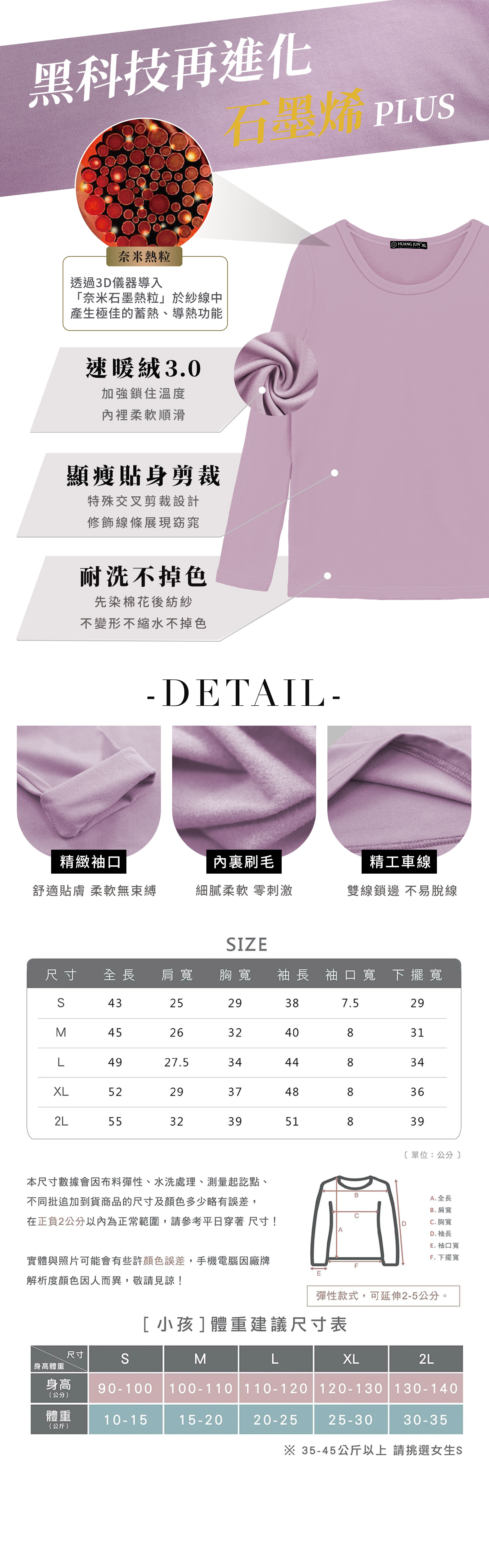【圓領】小孩款速暖絨保暖衣-粉紫