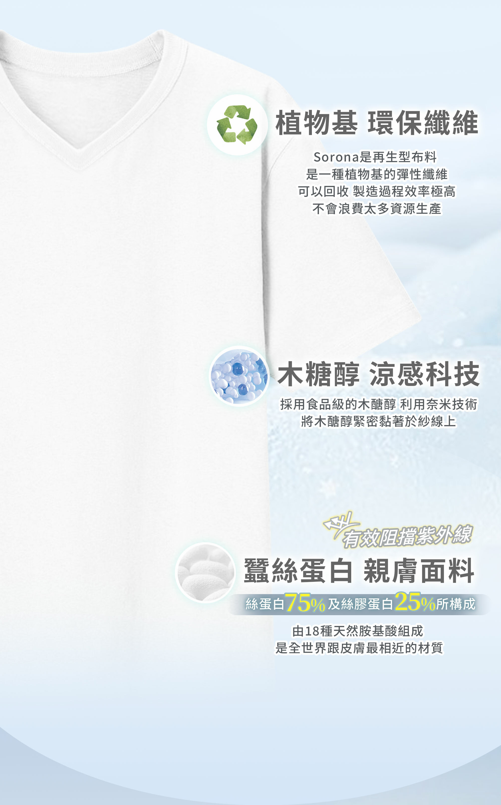 Sorona冰感認證- V領透沁涼感素T (兒童款)-白色