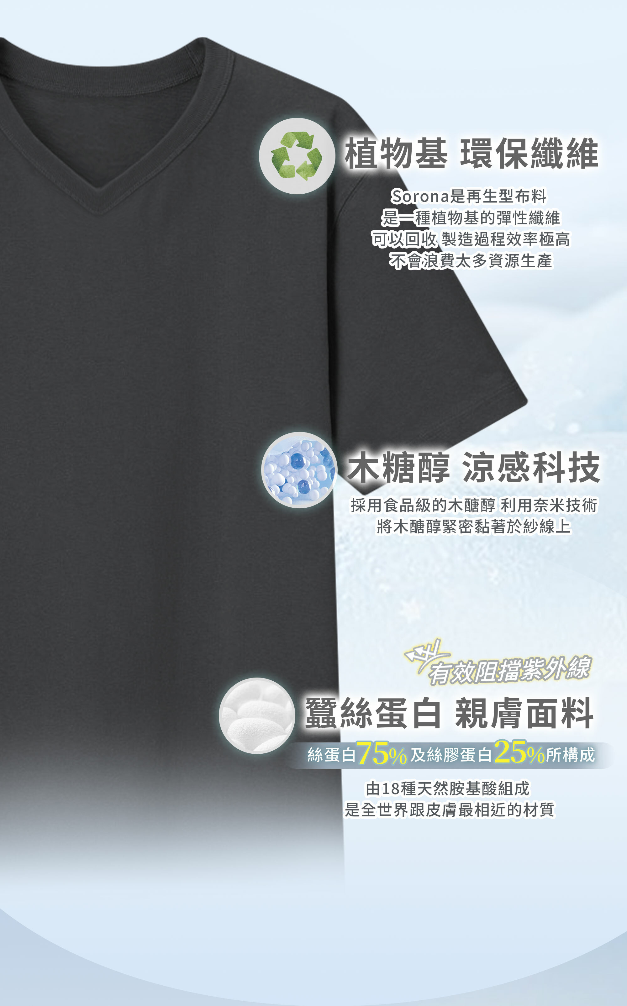 Sorona冰感認證-V領透沁涼感素T (兒童款)-鐵灰