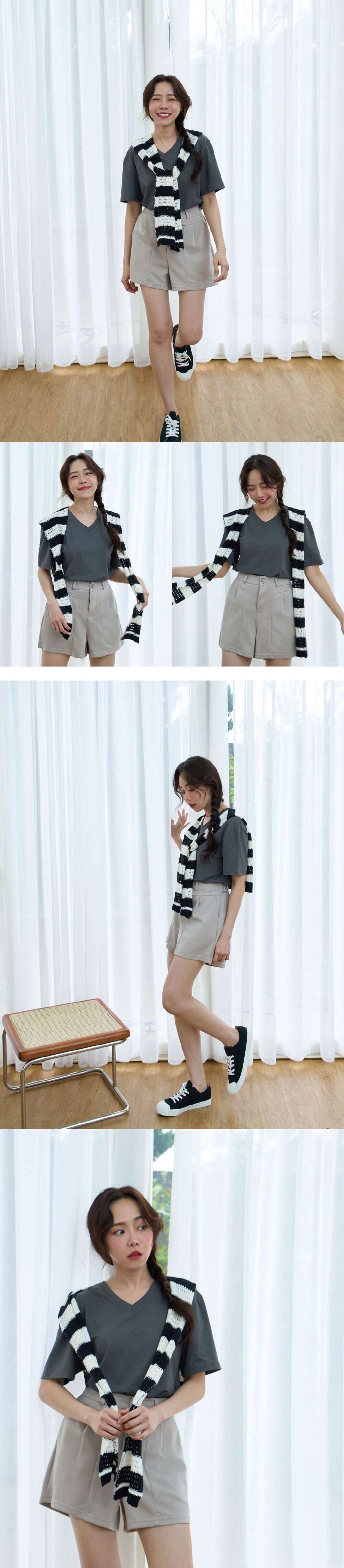 Sorona冰感認證-V領透沁涼感素T-鐵灰
