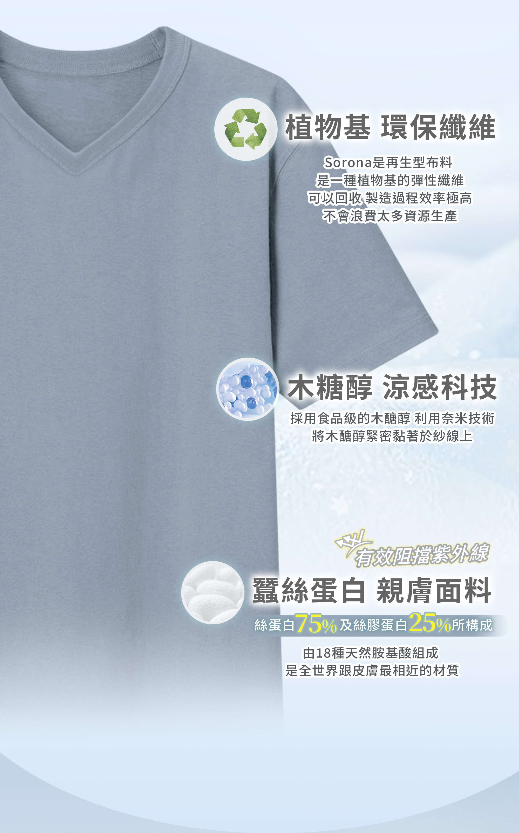 Sorona冰感認證-V領透沁涼感素T-沐夏藍