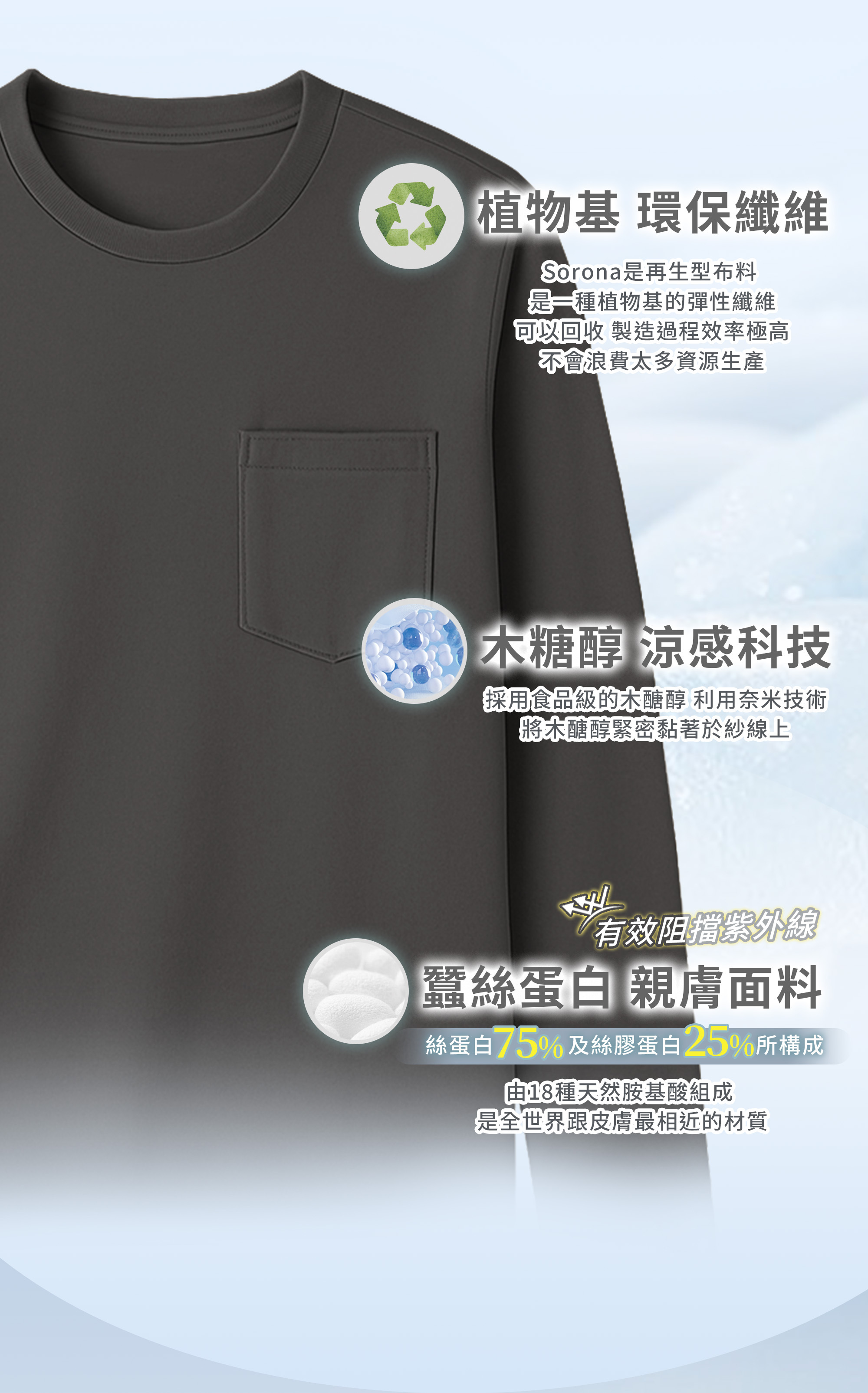 Sorona冰感認證-透沁涼感口袋長袖素T-鐵灰