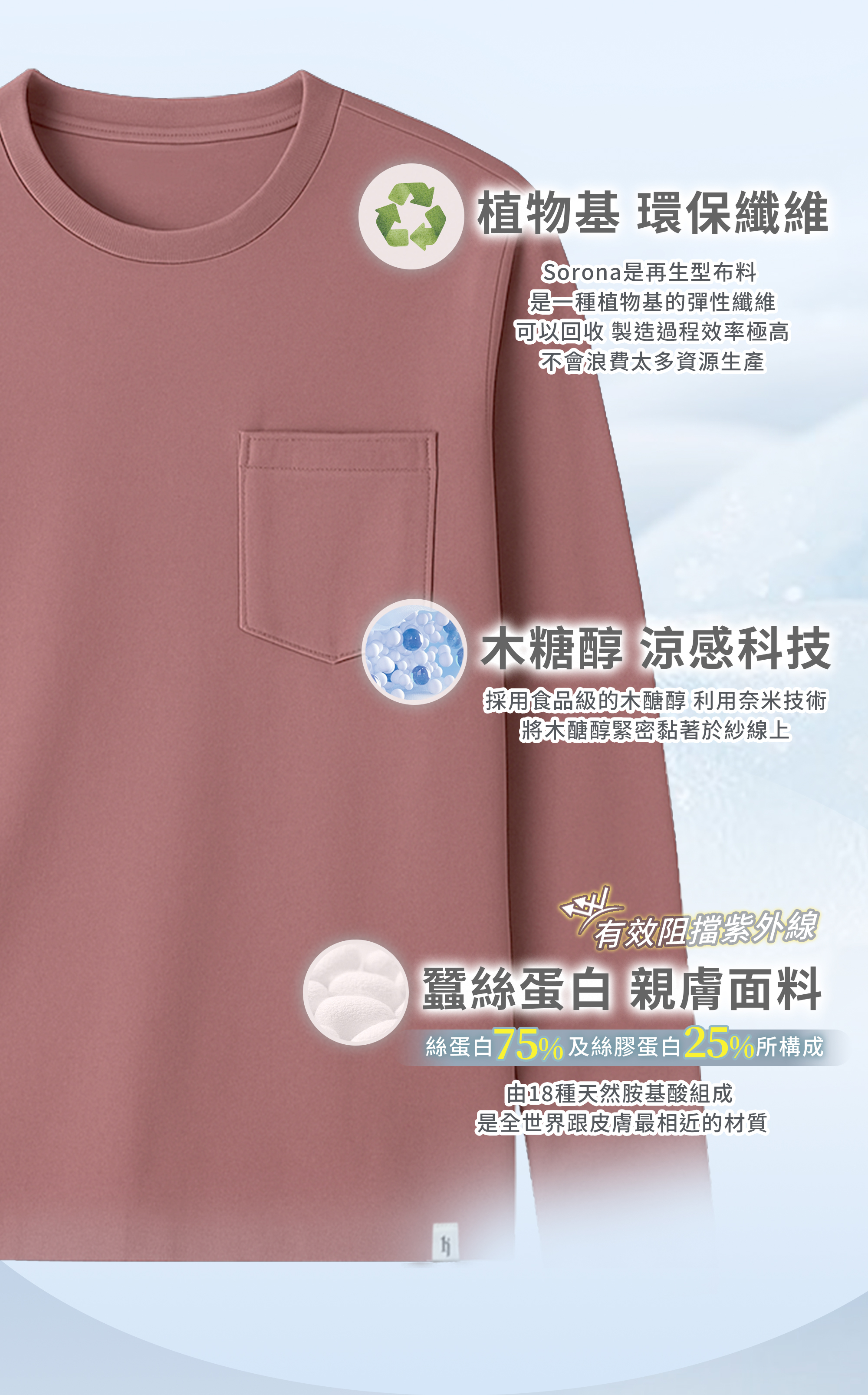 Sorona冰感認證-透沁涼感口袋長袖素T-櫻花粉