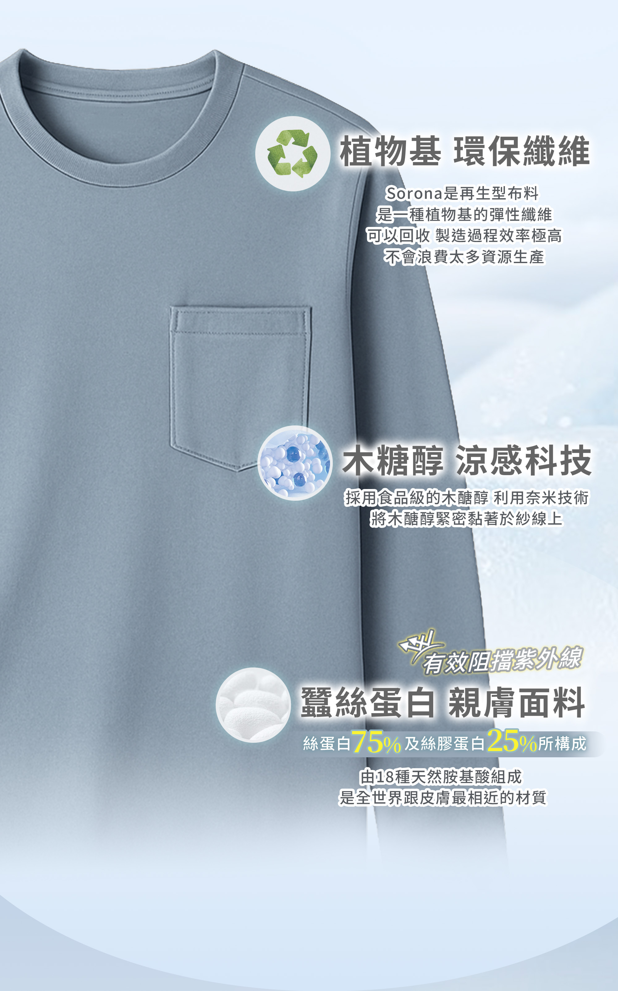 加大款-透沁涼感口袋長袖素T-莫迪藍