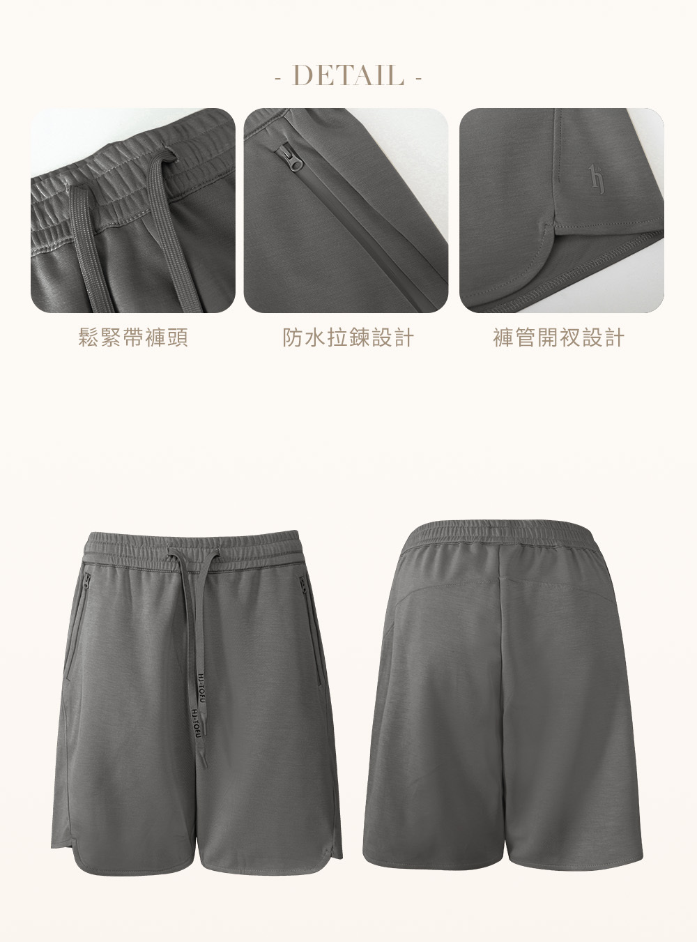 男款|防水拉鍊豆腐褲-深灰